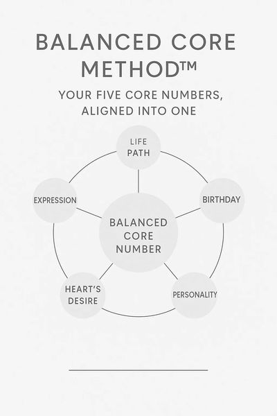 At the heart of Charted Soul is the belief that you are more than one number. The Balanced Core Method™ is a process I created to bring together your five core vibrational numbers—Life Path, Birthday, Expression, Soul Urge, and Personality—into a single guiding force: your Balanced Core Number™.